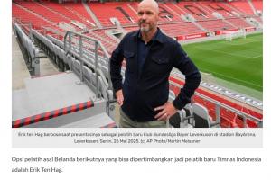 印尼媒体称,荷兰籍教练执教印尼队的可能性很高,滕哈赫是值得考虑的人选。