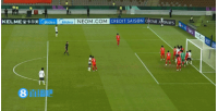 第47分钟,彭啸头球破门。慢镜头回放,彭啸被对方球员放倒后,随后起身正好头球完成破门。