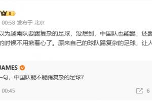 黄健翔表示:我本来以为越南队要踢复杂的足球,没想到,中国队也能踢,还踢的挺好,还让大家看球的时候不用揪着心了。原来自己的球队踢复杂的足球,让人心里这么踏实呢?