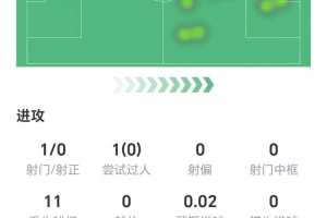 劳塔罗数据:1射零正,两次关键传球,11次丢失球权,获评6.8分