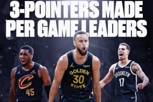 美媒晒场均三分榜单:库里4.5个领跑 米切尔和小波特紧随其后