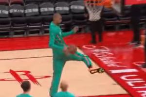 都去讨论扣坏篮筐了~仔细一看文班这个轻松的热身扣篮也挺离谱的