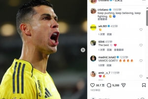 本场比赛C罗破门,打进生涯第960粒进球。赛后C罗也在个人社媒晒出本场庆祝照片,配文写道:“继续前进,继续相信,继续奋斗。”