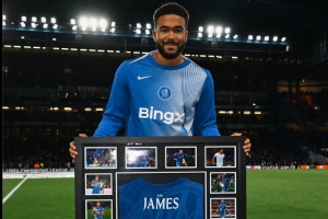 24直播网讯 切尔西队长里斯·詹姆斯在欧冠赛前达成俱乐部生涯200场里程碑。他获赠了特制纪念相框,印有他身披200号球衣的图案及捧杯等高光时刻。切尔西官方也发文祝贺,称其“实现着梦想”。