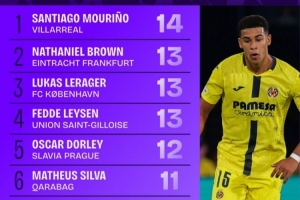 24直播网讯 欧冠前三轮铲球榜出炉。比利亚雷亚尔后卫穆里尼奥以14次铲球位居榜首,法兰克福的布朗等三位球员以13次并列第二。数据展现了本赛季欧冠球员在防守端的积极拼抢与激烈对抗。