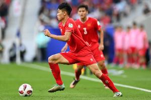 焦点人物!越南U23头号球星阮庭北vs韩国,助攻+任意球破门+红牌