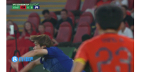 第8分钟,日本球员佐藤龙之介挑传,古⾕柊介包抄没踢准皮球部位。