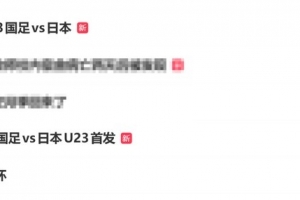 体育资讯1月24日讯 北京时间今天晚间,中国队与日本队展开U23亚洲杯决赛的较量。本场比赛在国内有着非常高的关注度,比赛刚刚开始时,微博热搜的前5位里已经有3条与本场有关。