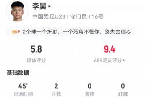 体育资讯01月24日讯 U23亚洲杯决赛,U23国足半场暂时0-2落后日本队。