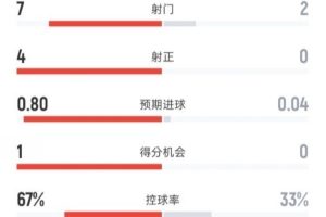 曼城半场2-0狼队数据:射门7-2,射正4-0,控球率67%-33%