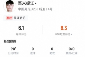吾米提江本场13长传4成功 4对抗2成功+3解围2抢断1犯规 获评6.1分