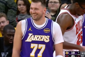 得分如喝水!东契奇干拔三分稳稳命中 投进后自己都笑了~