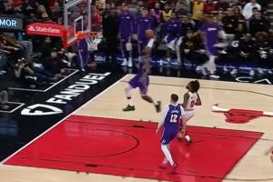 这速度和距离!詹姆斯远距离起飞单臂滑翔劈扣!半场20分赛季新高