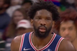 这样的球员谁能不爱!恩比德中投不中 埃奇库姆起飞单臂补扣!