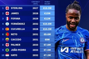 5人年薪超千万!切尔西工资表:刚离队的斯特林1950万欧第一