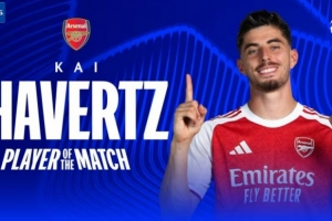 传射建功,官方:哈弗茨当选阿森纳3-2阿拉木图凯拉特全场最佳