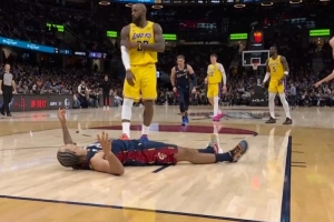 又一个!詹姆斯篮下拉拽泰森 再度被吹进攻犯规