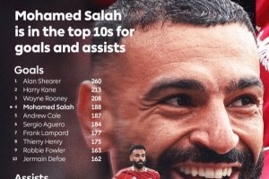 188球+89助攻!萨拉赫位列英超历史射手榜第四、历史助攻榜第九