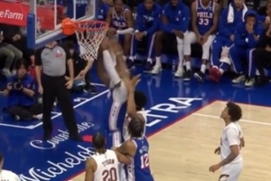 米切尔大帽德拉蒙德被吹犯规 骑士挑战成功但改吹了阿伦犯规
