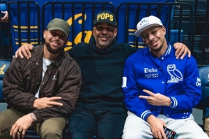 人逢喜事精神爽!库里兄弟和老爹一同观看杜克大学比赛!