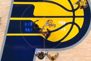 笑尿!奎因中场跳球时四次提前起跳 然后最后一次没有跳