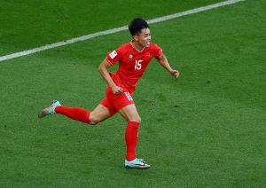 21岁的阮庭北就是越南队的真大腿,他凭借一己之力扛着越南队跻身四强。两年前(2023年1月)的亚洲杯上,时任越南队主帅的特鲁西埃大胆启用当时年仅19岁的阮庭北,并让他首发出战越南与日本队的比赛。小将不负众望独造两球,其中,他在第15分钟就头球攻破铃木彩艳把守的城门!
