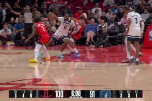 赚到!奥科吉被里德顶翻吹防守犯规 火箭挑战成功改进攻犯规