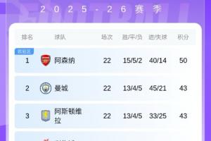 体育资讯01月19日讯 英超第22轮,阿森纳0-0踢平英超第17的森林仅取得1分。