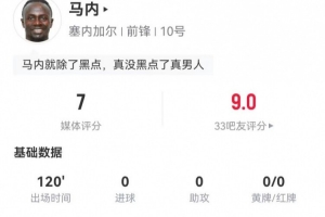 体育资讯1月19日讯 塞内加尔在非洲杯决赛加时1-0力克摩洛哥,马内本场数据如下: