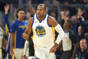 上半场,勇士内线霍福德表现可以,替补出战11分钟,投篮6中2,三分球5中1,拿到5分4篮板1助攻的数据,正负值+12两队最高。